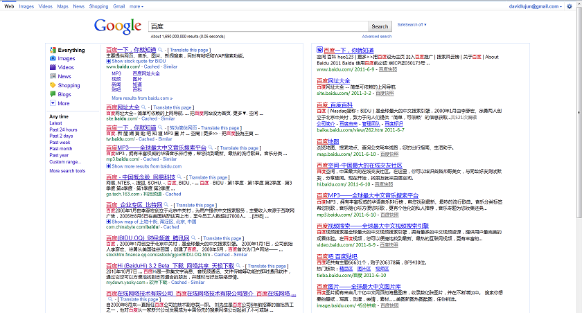 1、在GOOGLE的搜索结果页面显示相应的百度搜索结果;