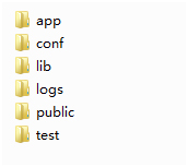 app 包含所有的model,controller以及view(模板)。 conf下是一个application.conf 配置文件。 lib是Play依赖的第三方jar。 logs是日志 public下包含你引用的js,css以及,images等。 test下所有的测试文件在此。