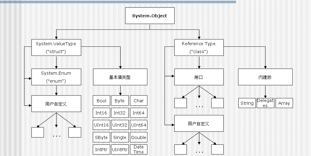 C#的引用类型进下一步划分为类类型(class type)、接口类型(interface type)、数组类型(array type)和委托类型(delegate type).