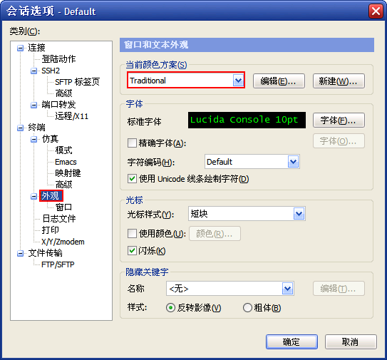 永久设置SecureCRT的背景色和文字颜色方案SecureCRT改颜色方案为Traditional大家都会了,但是好多人只会修