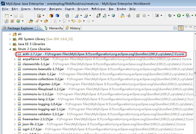 myEclipse8.5下SSH2开发时如何删除antlr-2.7.2包