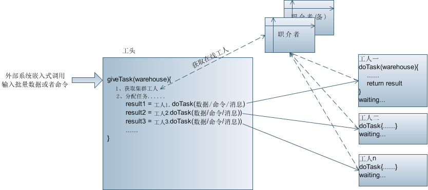 由上图可以看到, 由于工人需要向职介者注册(parkserver),因此需要配置指定ip端口告诉parkserver;由于工头和工人都需要知道parkserver地址,所以parkserver的ip端口需要配置为一致;由于工头通过park获取到工人ip,然后直接跟工人交互,因此工人不需要知道工头ip,工头本身也不是服务程序,所以工头启动不需要配置自己ip端口。