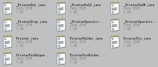 这里对生成的一些文件做些解释,分两两部份,服务端类文件及客户端类文件: