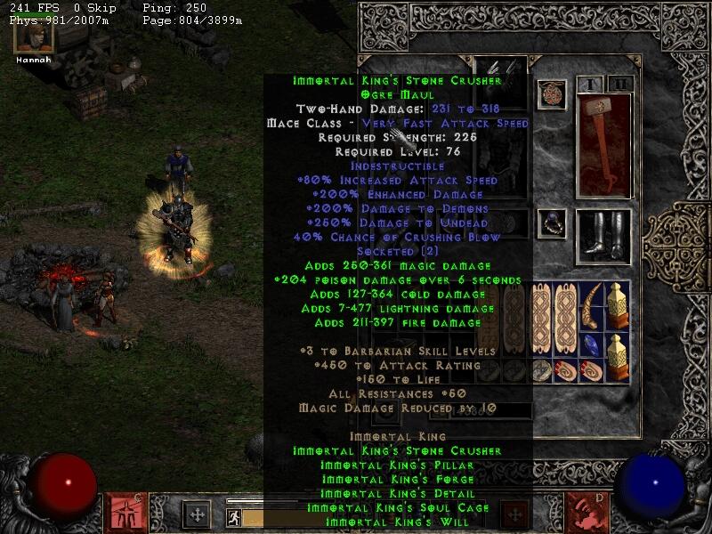 在套装中,严格意义上来说,是没有纯粹物理攻击的,bar和ama的套装上都带有魔法攻击,而bar的套装锤子上更是6重攻击都有(物理,魔法,火,电,冰,毒),还外带高CB。就ama而言,除了物理攻击就只有1xx-3xx的魔法攻击,这个比较惨。但俺使用了一个法宝:Atma's Scarab 项链和Nature's Peace 戒指。项链上带有5%的攻击时施展 Amplify Damage,别看只有5%,在使用“炮轰”技能时,一次炮轰有15次出发机会,基本两次炮轰就可以施展AMP了。另外,Nature's Peace 戒指“防止怪物自疗”和“杀死的怪物能不再召唤的”的属性,能很大程度上加快Bow AMA杀敌的速度。 因此对Bar和AMA而言,破物免不是问题。不存在你说的磨5分钟(那样真要疯的,呵呵),solo 速度很流畅