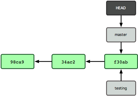 我们知道,git是通过创建一个新的分支指针来创建一个新的分支的。比如,新建一个testing分支,可以使用如下命令: