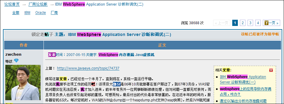 IBM WebSphere Application Server 诊断和调优(07年写的,原JavaEye精华帖)