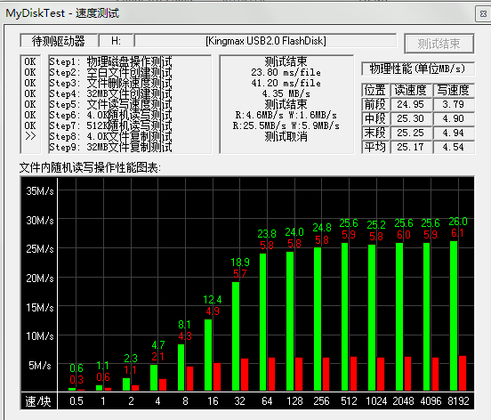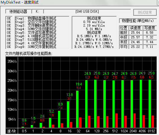 用MyDiskTest测量一下速度,结果惨不忍睹