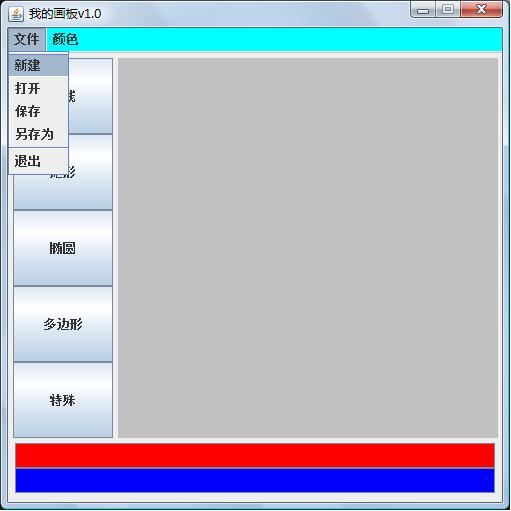 这种方法比较直接,即将画出的每个图形,依次保存到队列中,并将此队列用流输出到文件中,由于形状对象和写入格式都是自己定义的,所以保存到文件中后也只能通过自制的画板读取图像。