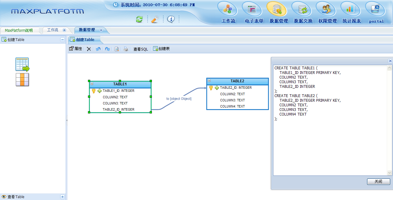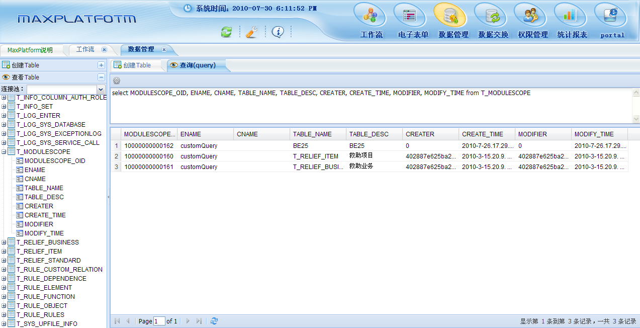 数据管理:可以创建表,表的查询,创建数据库连接。