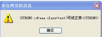 <!doctype html> <html lang="en"> <head> <meta charset="utf-8" /> <meta content="IE=7" http-equiv="X-UA-Compatible"/> <title>如何区分属性与特性 by 司徒正美</title> <script type="text/javascript"> var test = function(){ var a = document.getElementById("aaa"); a.className ="test" alert(a.parentNode.innerHTML) } </script> </head> <body> <p><strong id="aaa">司徒正美</strong></p> <p><button type="button" onclick="test()">点我,进行测试</button></p> </body> </html>