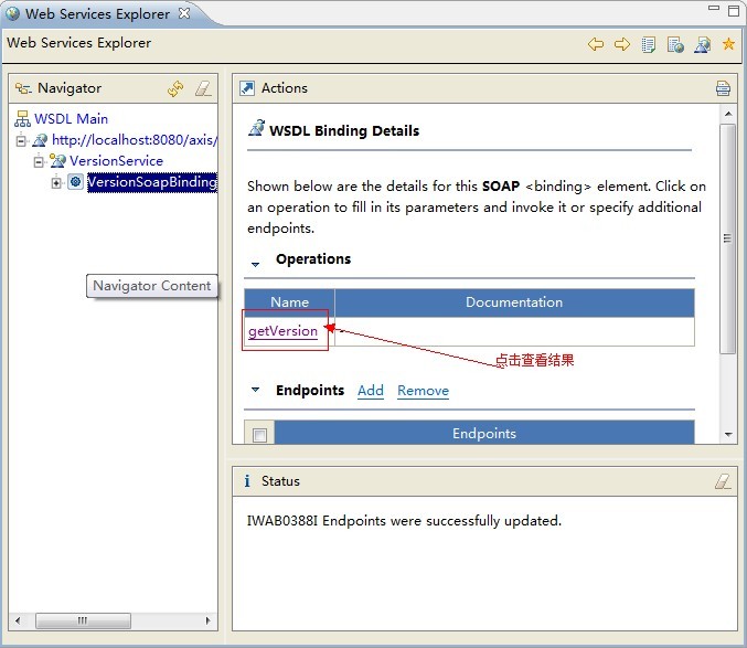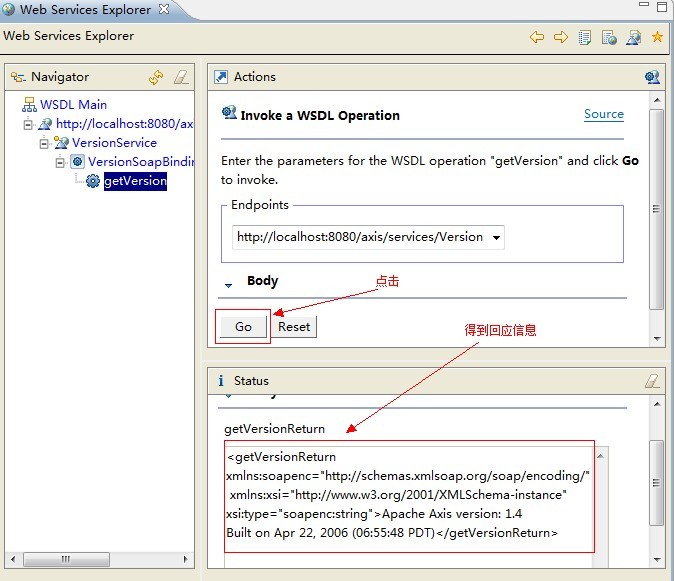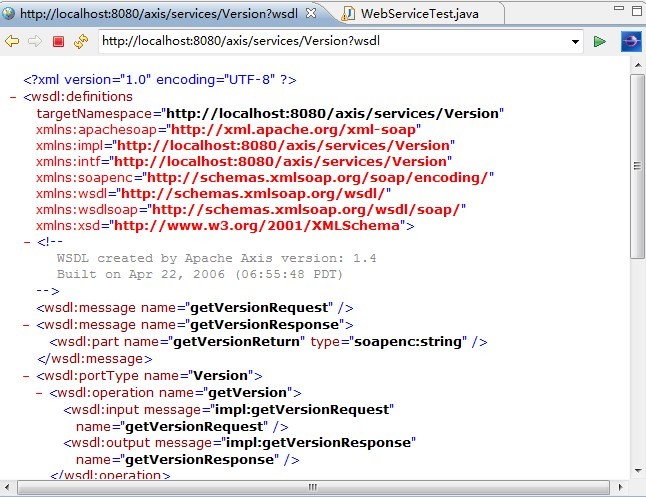 我们将测试Axis1内部的Version服务。
