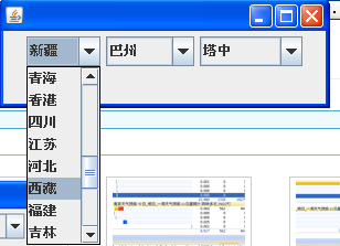天气小工具昨天我们得到了全国的省份,市,区的三级信息。我们就应该让用户能选择。通过使用JComboBox我们可以