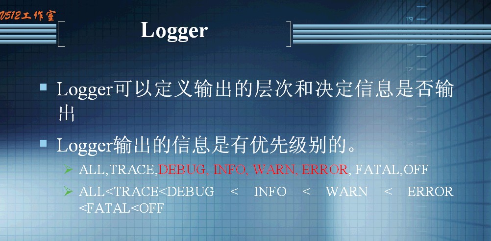 在Log4j体系中共有八个级别,其中最常用的有4个:截图中标红的部分。