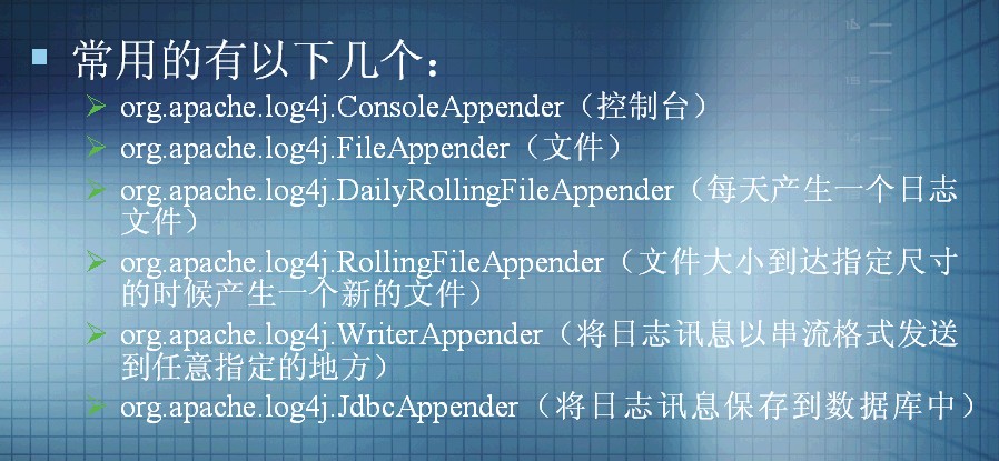 1、Log4j体系(配置文件)中主要由一下三部分组成。