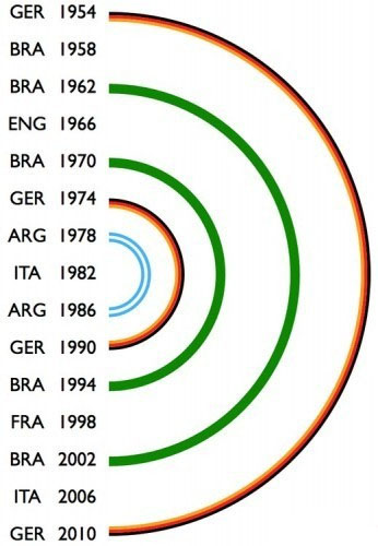从图可看出,仅有2次不符合规律的。看来德国战车夺冠的概率特别大!