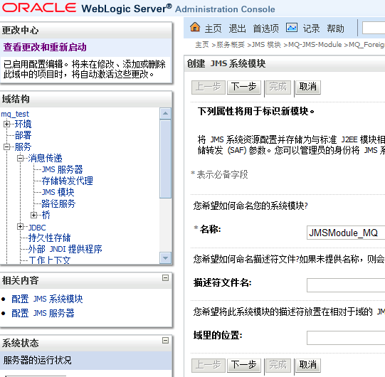 在上面这篇文章,我们完成了MQ、JMS的配置,那么接下来我们来到重点--将weblogic和MQ连接起来。