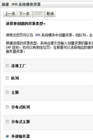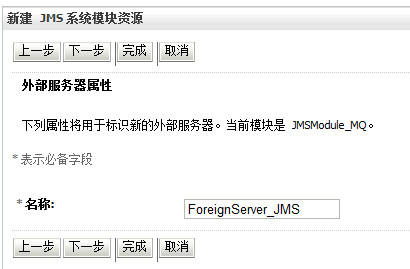 在刚才的模块创建一个资源,类型为外部服务器(foreign server)名为ForeignServer_JMS: