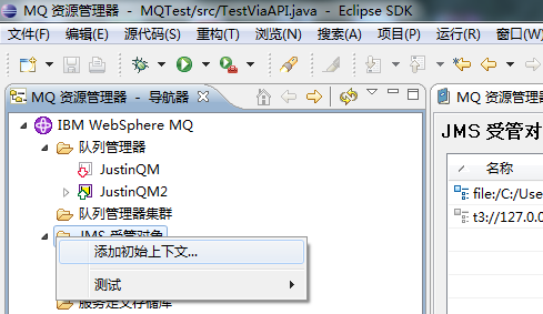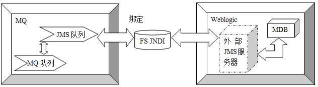 我们的最终的目标是,部署在weblogic上的MDB可以自动接收到投放到MQ队列的消息,也可以通过JMS队MQ列往里投放消息。