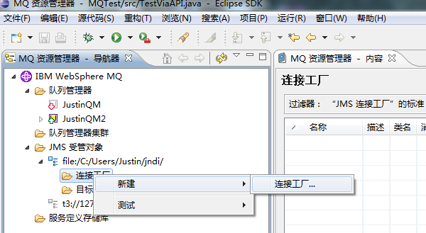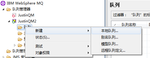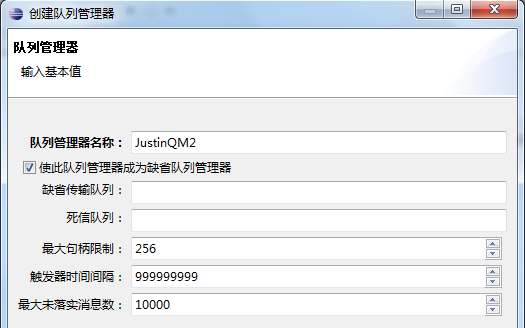 首先创建一个测试用的MQ队列管理器,名为JustinMQ2(名字随便):