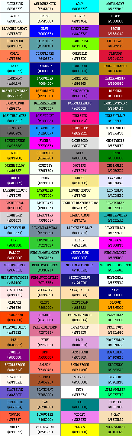 CSS样式颜色表