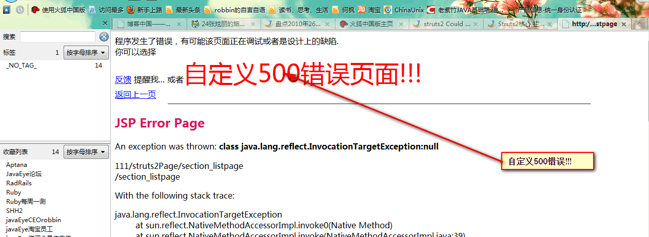 就在周五快下班的时候,看到测试组的MM们在做着最后的项目测试,一个的404/500高频率的出现,(因为我在加于那个项目组的时候项目做8899了,我也只是做了一下结尾的部分)说真的那项目做的真的不怎么样,很多很多的细节方面的东东都没有考虑到.boss都来敷衍了,唉!我这新来的,也就不了了之了.在那会我就想到了一个问题,有没有捕获301/404/500错误的办法呢!出错了也给一个友好人性化的错误提示吧!!!google一看,网上都一大把,因为元旦嘛!也只是那会在公司查了一下资料看了一下!藐似只需要简单的在web.xml中做简单的配置,也没怎么来实践.所以今下午就来试试牛刀.