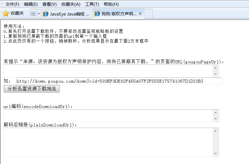 【已经不能用了】发个html+javascript作的工具:狗狗 版权方声明保护内容 链接地址分析器