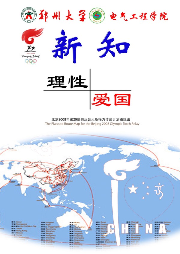 3、这个就也是08年了,当时火炬传递不顺利,尤其在法国,同学们情绪都比较激昂,抵制家乐福活动也此起彼伏,于是院里为了引导大家的情绪,赶出来一份院刊,这个就是这个院刊的《封面》: