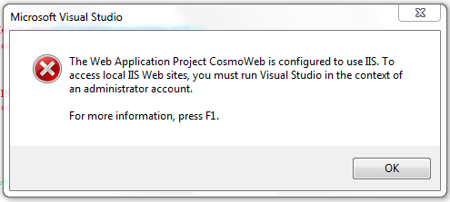 Unable to create the Website...To access local IIS Websites, you must run Visual
