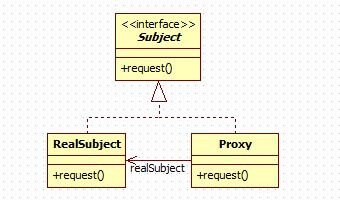 /** * 定义了Proxy和RealSubject共同的接口 * 这样就在任何使用RealSubject的地方都可以使用Proxy * @author Jelly * */public interface Subject {public void request();}/** * RealSubject类 定义了Proxy所代表的真实实体 * * @author Jelly * */public class RealSubject implements Subject {public void request() {System.out.println("真实的请求");}}/** * 保存了一个引用使得代理可以访问实体 并提供一个与Subject的接口相同的接口,这样代理就可以用来替代实体 * * @author Jelly * */public class Proxy implements Subject {private RealSubject realSubject;public void request() {if (null == realSubject)realSubject = new RealSubject();realSubject.request();}}public class Test {public static void main(String[] args) {Proxy proxy = new Proxy();proxy.request();}}