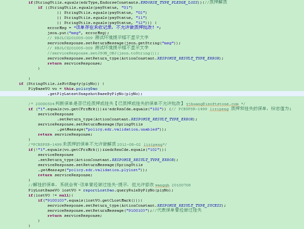 如果质押解质需求有所改变,需要根据另外一个校验因子做判断。那将会导致需要通读这全段代码,找到所有关于质押的校验,然后挨个条件。对于不懂质押需求的开发人员,做这件事相信风险是非常大的!同事,这些代码还被揉杂在其他诸如收付状态灯的校验当中。修改的复杂度在这种需求的不断变更中不断被拉高!