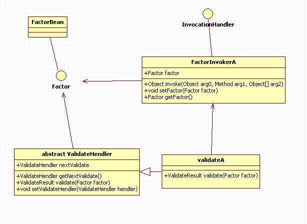 f)FactorInvokerA 实现了invovationHandler接口,同时依赖了接口Factor,因此也就具有了对Factor设置值得能力。