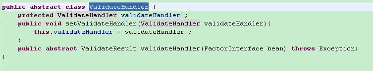 c)validateHendler 作为一个校验的抽象类。是职责链模式的一部分