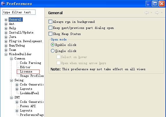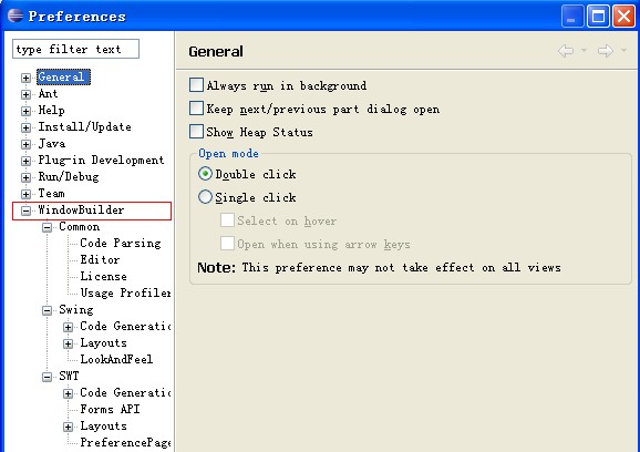 安装windowbuilder后可以通过启动eclipse,选择Window > Preferences