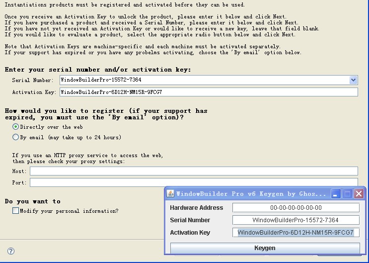 输入MAC地址后,点击Keygen会自动生成注册机的其余两行