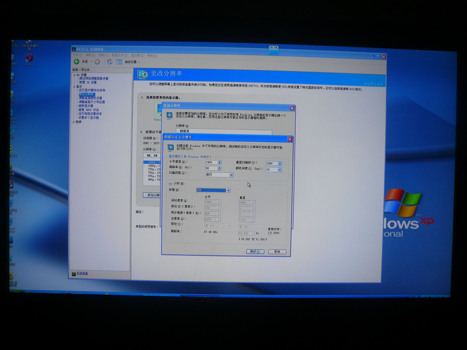 注意, 我测试过60HZ的GTF, 说是设备不支持, 如果你的电视支持就要恭喜你了.