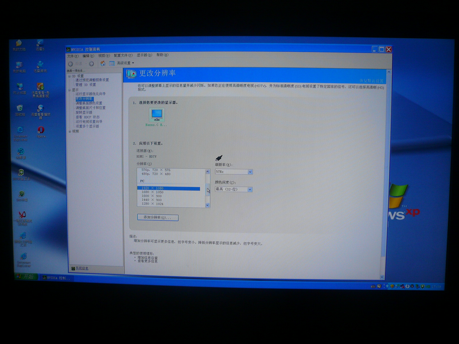 然后你会发现, 可用频率里面有一组PC的啦,选那个1920*1080就是刚才添加的..应用吧.