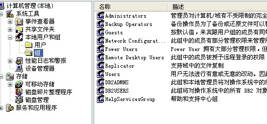 查看组,安装DB2后,组里面会多出DB2ADMNS和DB2USERS。