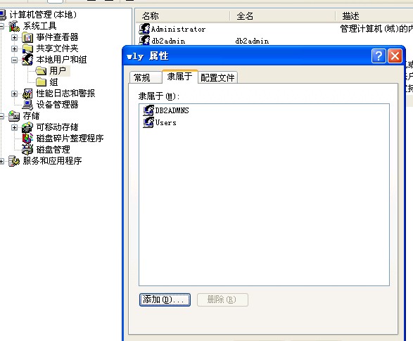 在用户里面添加一个新用户。建好后属性->隶属于,添加DB2ADMNS.