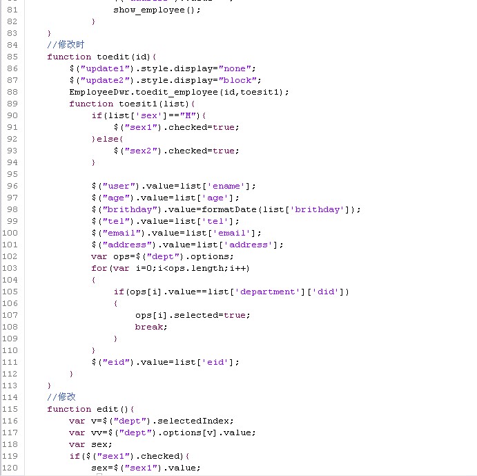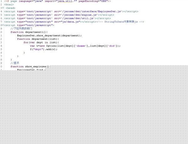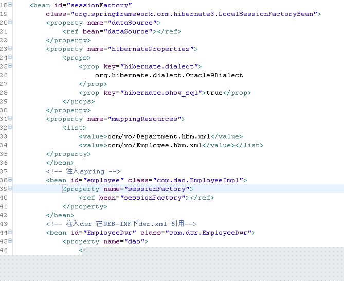 有一点要说明的是由于结合hibernate和spring的使用(还有的话就是你表的深度)有时候你会发现使用dwr从后台返回前台的数据会得不到、报error错误,解决方法你在把你得到的数据从新封装一下再返回就不会有那样的错误