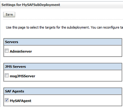 不要把MySAFSubDeploymenttarget到JMS Server上,这一步很关键,不要搞错