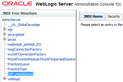 查看JNDI Tree,如果能看到SAF_msg2Queue,说明SAF配置成功。