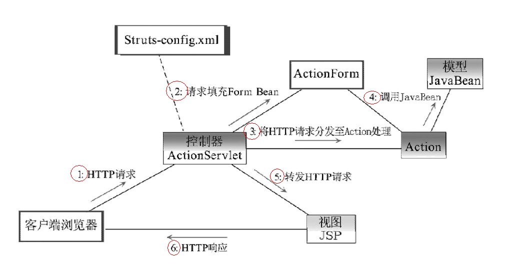(7)ActionForward对象指向JSP组件生成动态网页,返回给客户;