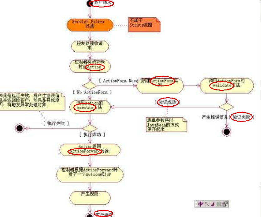 1.启动Tomcat服务器,加载web.xml --> 加载struts-config.xml