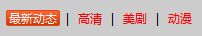 <!DOCTYPE html PUBLIC "-//W3C//DTD XHTML 1.0 Transitional//EN" "http://www.w3.org/TR/xhtml1/DTD/xhtml1-transitional.dtd"> <html xmlns="http://www.w3.org/1999/xhtml"> <head> <meta http-equiv="Content-Type" content="text/html; charset=GB2312"/> <title></title><style type="text/css">html,body{font-size:12px;}.dataBar a,.dataBar span,.dataBar div{display:block;height:16px;line-height:16px;vertical-align:middle;float:left;}.dataBar div{float:left;padding:0 0.5em;}.dataBar a{color:red;text-decoration:none;padding-left:3px;}.dataBar a:hover,.dataBar a#currentData{color:white;}.dataBar span{cursor:hand;padding-right:3px;}.dataBar a:hover,.dataBar a:hover span,.dataBar a#currentData,.dataBar a#currentData span{background:url(tab.gif) 0 0;}.dataBar a:hover span,.dataBar a#currentData span{background-position:100% 100%;}</style><script type="text/javascript">function itemClick(a){var id = "currentData";if(a.id==id){return true ;}else{document.getElementById(id).id="";a.id=id;}return true;}</script></head><body style="background-color:#ccc"><!--http://wallimn.iteye.com--><div style="height:16px;"><a href="#" id="currentData" onclick="itemClick(this)"><span>最新动态</span></a><div>|</div><a href="#" onclick="itemClick(this)"><span>高清</span></a><div>|</div><a href="#" onclick="itemClick(this)"><span>美剧</span></a><div>|</div><a href="#" onclick="itemClick(this)"><span>动漫</span></a></div></body></html>