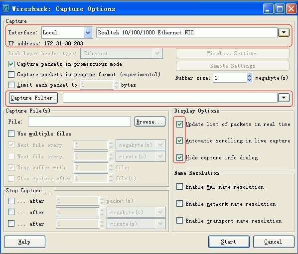 Capture Filter这一栏是抓包过滤,一般情况下可以不理会,留为空。
