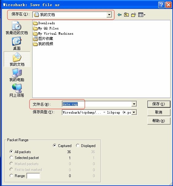 选择好保存路径和文件名(请不要中文)后,点击保存。这样我们就完成了一次抓包并保存,剩下的就是要去分析数据包中的内容以发现网络故障所在。