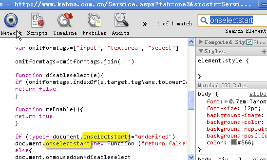 在网上搜到了限制页面右键, 及选择的方法, 主要有下几个: