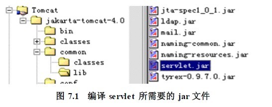 (1)所有web服务目录可使用的servlet的存放位置 图7.1 编译servlet 所需要的jar文件