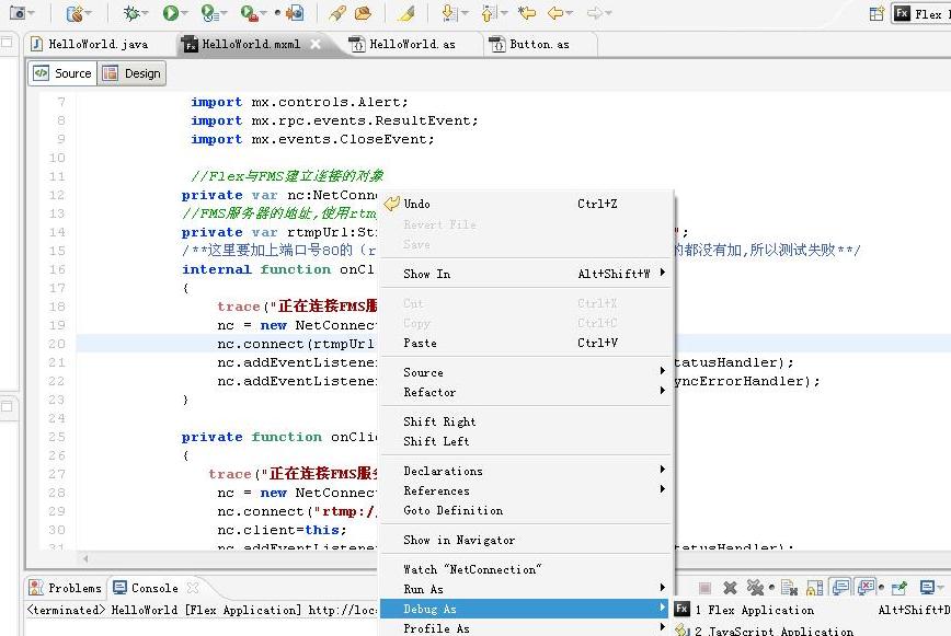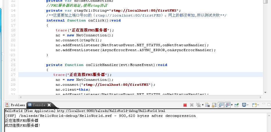 我用的也是网上的例子,但是网上的不能运行,不知道是不是FMS版本的问题。
