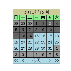 <style type="text/css">.calender_tb{border-collapse:collapse;background-color:lightblue;font-family:'宋体';font-size:90%;width:160px;height:160px;}.calender_tb tr td{padding:2px;cursor:pointer;border:1px solid black;text-align:center;white-space: nowrap;}.calender_tb caption{background-color:#CCCC99;border-top:1px solid black; border-left:1px solid black; border-right:1px solid black; font-size:120%;}.calender_tb tr.calender_nav{border:1px solid black; white-space: nowrap;}.calender_tb tr.calender_nav td{border:none;}.calender_tb th{background-color:lightgreen;border-top:1px solid black; border-left:1px solid black; border-right:1px solid black; }.calender_tb .disabled_td{background-color:#999;}.calender_tb .invalid_td{background-color:#666;}.today{background-color:blue;color:#fff;}.calender_tb tbody tr td.td_mouse_over{color:blue;background-color:yellow;}</style>